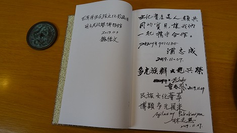 台湾国立原住民族博物館設立準備委員会の方々が当館が所蔵している台湾原住民族の写真や服飾、文物などの調査に来訪され、館長室へお越しになりました。