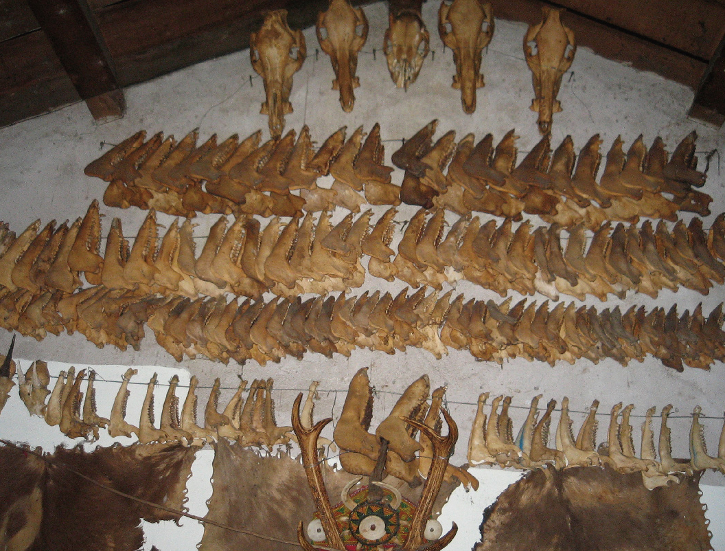 狩猟した獲物の頭骨や下顎を懸架する