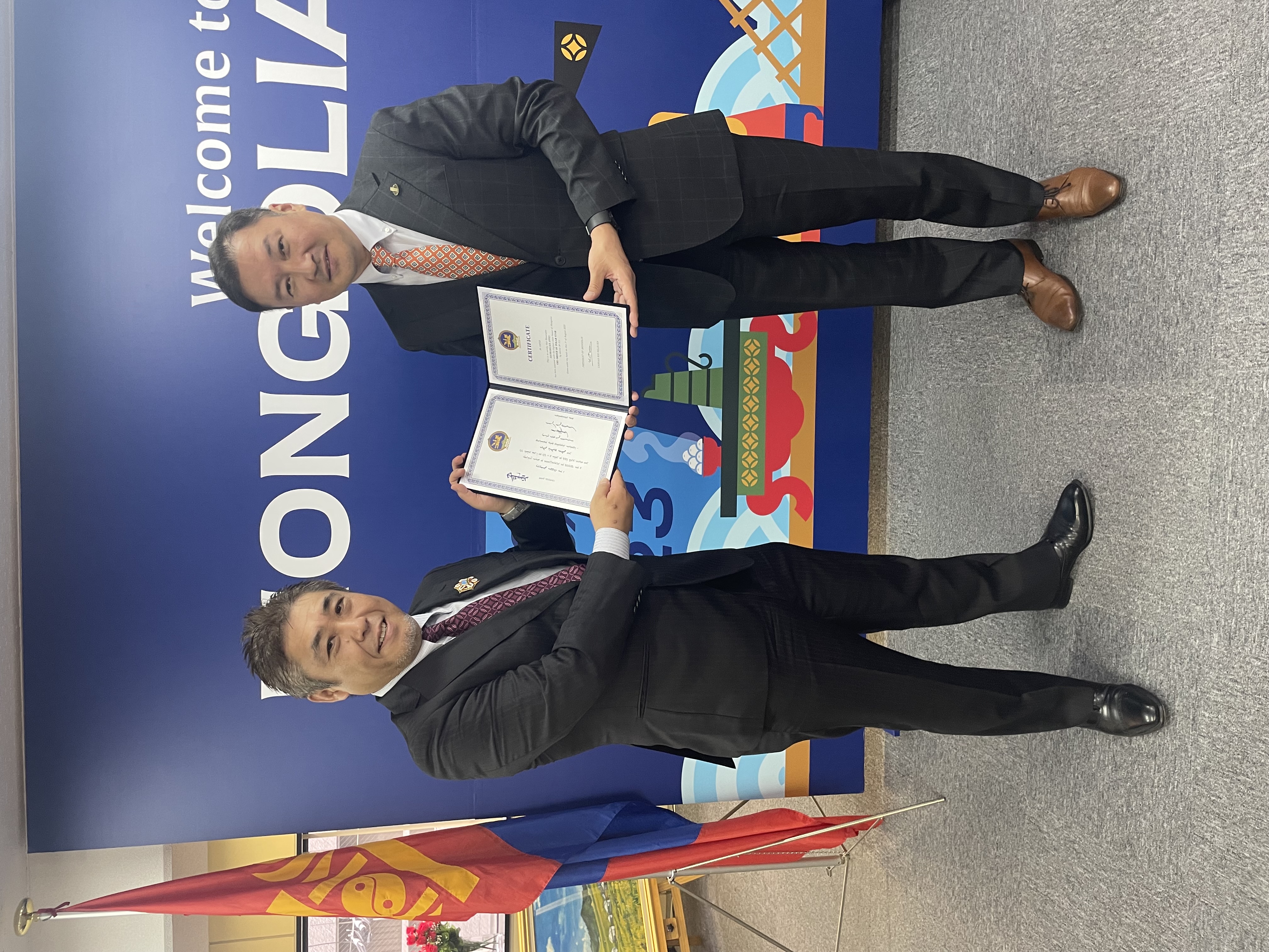 勲章は2023年8月1日付で授与され、叙勲式が2024年6月18日に在大阪モンゴル総領事館で行われました。