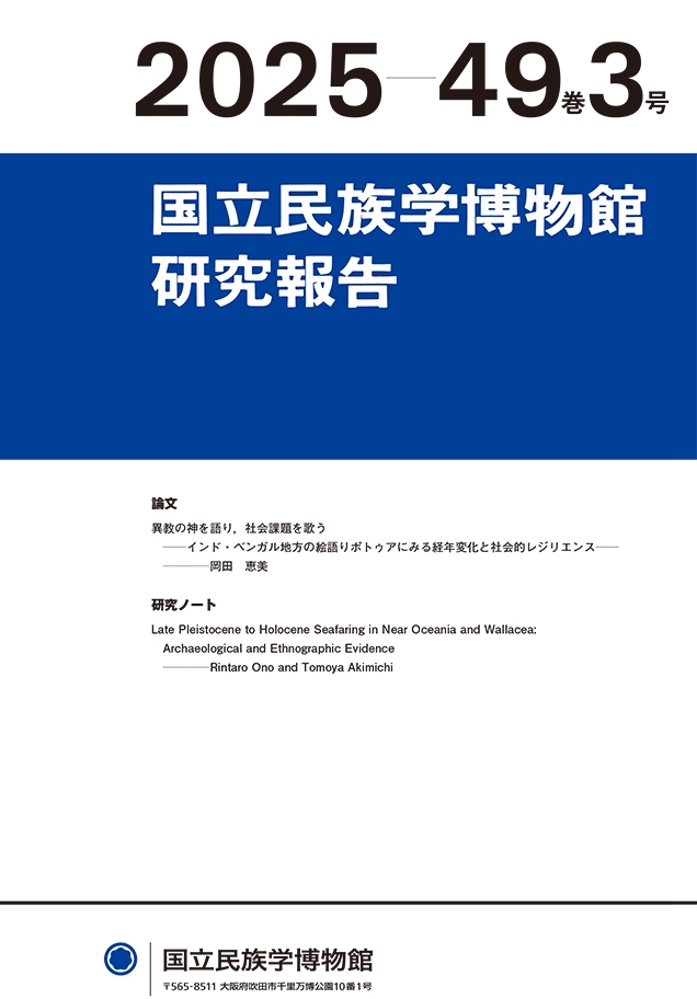 『国立民族学博物館研究報告』は、民族学、文化人類学の発展に寄与するために、国立民族学博物館が刊行する研究誌です。この目的に即して、民族学、人類学および関連諸科学に関する論文、書評論文、資料、研究ノートを掲載しています。年4回出版。