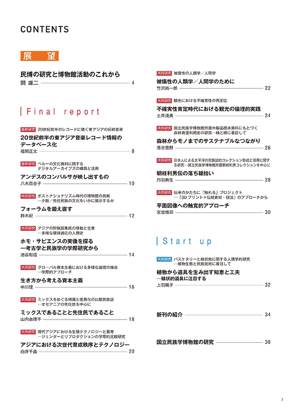 『民博通信』は、本館において実施している個々の研究プロジェクトについて、その学術的な特色や独創的な点、導き出された成果などを、研究者や一般の方々にわかりやすく発信する雑誌です。